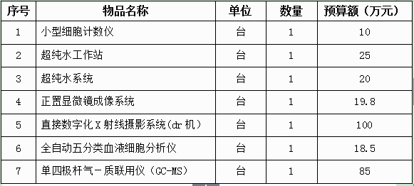 廣西壯族自治區疾病預防控制中心近期擬公開招標采購一批專用設備,現將擬采購預算單價在10萬元以上設備的品目、單價預算、擬采購數量進行預公告(見下表)。歡迎擬參加投標的供應商投送資料,以便參考,供編制招標技術參數。
