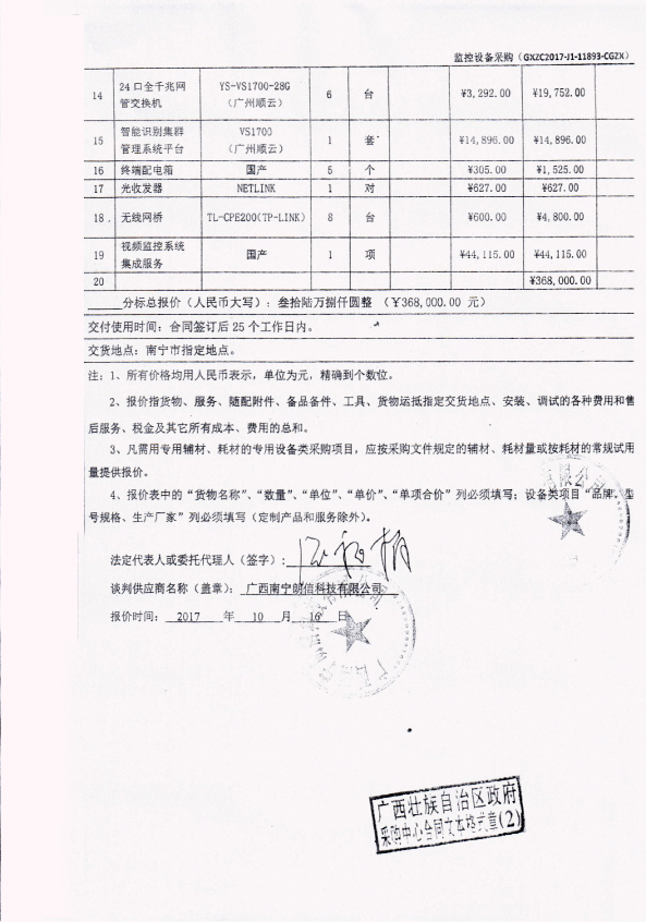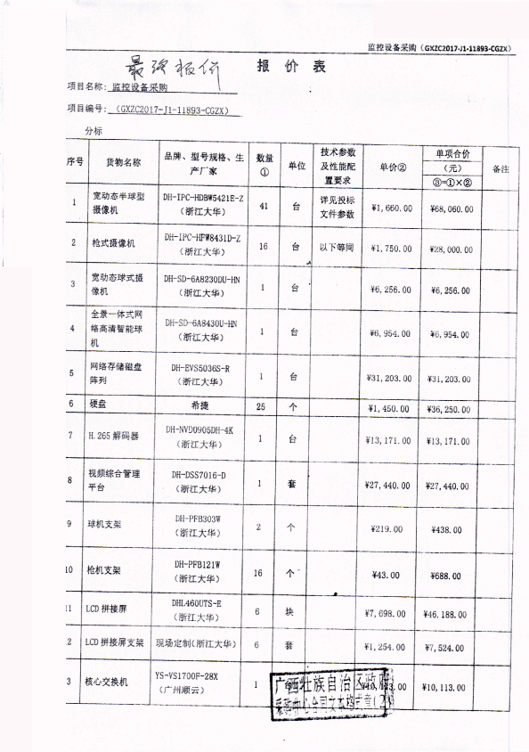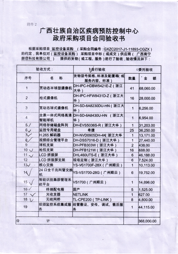 監控設備采購(GXZC2017-J1-11893-CGZX)的驗收情況公告如下: