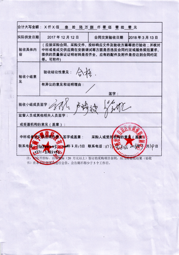 GXZC2017-J1-11893-CGZX)的規定,對乙方(中標方)提供的貨物,制定以下驗收工作要求并組織實施驗收: