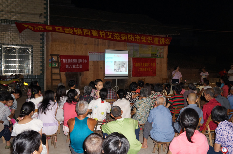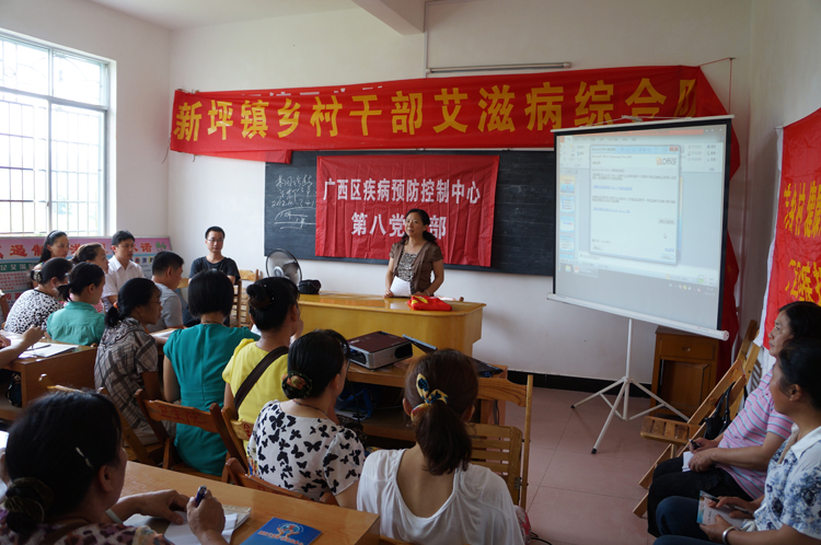 在荔浦縣新坪鎮和馬嶺鎮二個鄉鎮衛生院,第八黨支部結合業務特點,由支部書記劉偉、副所長朱金輝和陳怡三位黨員分別主講,給100多名村醫及村干部分別開展《艾滋病綜合防治知識》、《艾滋病新防治條例》和《職業暴露的預防與處理》等專業知識培訓。兩個鎮的村醫和鄉村干部通過培訓,對我區艾滋病的防控知識有了一些了解和認識,表示在以后的工作中將結合他們的實際工作做好艾滋病預防工作,并注意做好職業防護。