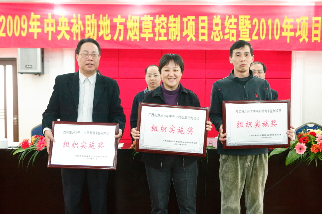 在本次會議中,我中心廣西2009年中央補助地方煙草控制項目組織實施獎和希望在自治區愛衛辦的領導、支持下,通過大家的共同努力,來做好控煙項目工作,做好醫療單位控煙工作、做好廣西的控煙工作。