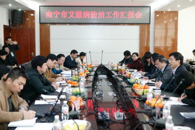 3月8日上午8時30分,中國CDC性艾中心綜合技術督導工作匯報會在廣西CDC行政樓五樓會議室進行,參加的人員有國家督導組成員、廣西衛生廳梁遠副廳長、艾防處耿文奎處長、陳赤處長、陳杰調研員、艾防處相關工作人員、廣西CDC班子成員、綜合辦公室、艾防所及相關業務科(所)專業人員等,會議由廣西CDC楊進業書記主持。首先,由廣西CDC唐振柱主任從廣西艾滋病疫情分析、死亡病例分析、綜合防治主要工作成效、落實2010年國家考核指標情況、存在問題和困難、2011年工作計劃等五個方面做了詳細的工作匯報。接著,由廣西衛生廳梁遠副廳長代表衛生廳對中國CDC長期支持廣西、幫助廣西表示衷心地感謝,梁遠副廳長談到,廣西各級黨委、政府非常重視艾滋病防治工作,堅信通過幾年的不懈努力和辛勤工作,防艾效果一定會顯現出來,也希望通過國家對廣西的這次督導,使廣西艾滋病防治的各項工作得到進步,推向一個新的高度,進而改進工作質量。中國CDC性艾中心吳尊友主任對廣西所做的工作給予了充分肯定,并做了《廣西艾滋病防治工作與落實國務院<通知> “五擴大、六加強”措施》的專題報告,內容包括疫情分析與工作現狀、廣西存在問題的分析”、 “十二.五”工作展望、2011年廣西落實“五擴大”的具體措施等。隨后,國家督導組的其他專家分別就病人發現晚、檢測數據的進一步分析、治療網絡體系建設、美沙酮維持治療、針具交換等方面提出了中肯的建議。最后,廣西衛生廳防艾辦耿文奎處長、陳赤處長和廣西CDC唐振柱主任分別就廣西艾滋病防治工作中實際存在的一些瓶頸問題、難點問題向國家專家請教,雙方進行了廣泛地交流,取得了共識。