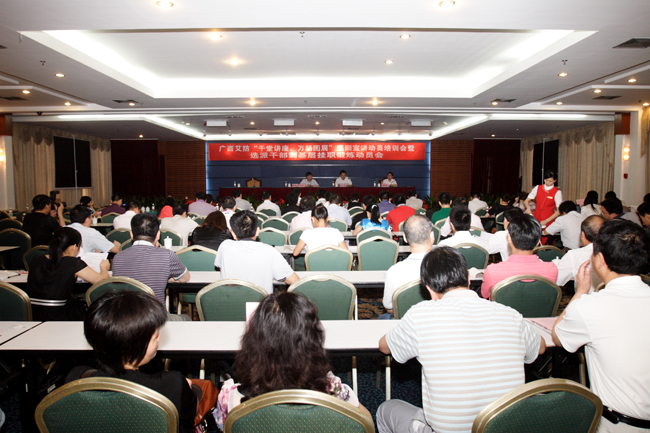 為總結分析全區各市、縣艾滋病疫情及綜合防治工作進展,研究部署下一階段防治工作,啟動“千堂講座下基層,萬場圖展進社區”的廣西艾防巡回宣講行動,確實擴大艾滋病防治知識宣傳覆蓋面,并加強對年輕干部的培養,協助和支持基層疾控中心開展疾控業務工作,促進我區防治艾滋病攻堅工程各項措施的落實和推進基本公共衛生服務疾控項目工作進程。自治區疾病預防控制中心于2011年5月10~13日在南寧市召開“全區2011年第一季度艾滋病疫情分析工作會暨廣西艾防‘千堂講座、萬場圖展’巡回宣講動員培訓會暨選派干部到基層掛職鍛煉動員會”。