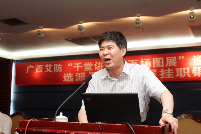 自治區防艾辦副主任耿文奎、自治區疾病預防控制中心主任唐振柱等領導出席了會議并作了發言。此次會議邀請了深圳疾病預防控制中心的陳琳科長對深圳市社區艾滋病綜合防治工作進行了介紹。會上介紹了廣西第一季度的艾滋病疫情分析,討論研究下一階段艾滋病防控工作思路和巡回宣講行動方案及課件內容如何落實的問題。會上唐振柱主任還做了巡回宣講行動及選派干部到基層掛職鍛煉動員報告并介紹了巡回宣講行動方案。各市縣的參會代表積極參與討論,并提出了自己的意見和建議。
