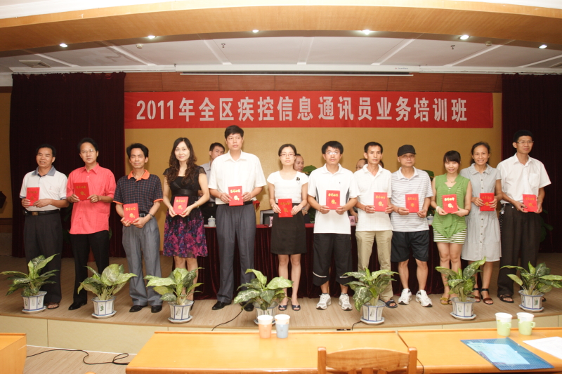 歷時兩天的2011年全區疾控信息通訊員業務培訓班7月29日降下惟幕。來自全區各市、縣CDC及廣西疾控中心各科(所)業務通訊員共100多人參加了會議。廣西區衛生廳辦公室副主任新聞辦主任黎甲文、廣西疾控中心副主任呂煒、辦公室主任黃兆勇等領導同志到班,并在班上作了重要講話,并給獲得2010年廣西疾控信息先進(優秀)通訊員頒發了榮譽證書。