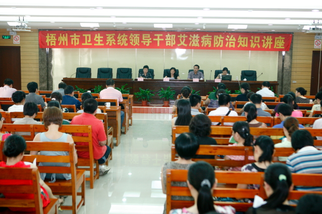 為貫徹落實自治區區黨委、自治區人民政府關于實施防治艾滋病攻堅工程的決定,按照自治區防艾辦“千堂講座下基層,萬場圖展進社區”宣傳教育活動統一部署,以及廣西疾控中心分片包干的工作安排,廣西疾控中心周艷副主任、呂煒副主任率專家組于7月下旬至8月上旬赴賀州市、梧州市開展預防艾滋病宣講活動,對當地市、縣、區的領導干部、醫護人員、公安干警以及大眾人群舉辦預防艾滋病宣講講座,詳細介紹了艾滋病基本知識、目前我區艾滋病流行現狀、預防艾滋病措施以及應采取的防控策略等內容。