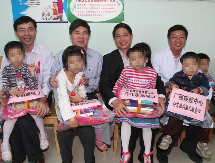 在廣西疾控中心艾滋病門診治療的20多個艾滋病孤兒,大都來自農村,最大的14歲,最小的4歲。艾滋病惡魔奪走了他們父母雙親的生命,他們不僅失去了父愛與母愛,還因為感染了艾滋病又失去了社會環境應該給予的溫暖與歡樂,在恐懼、孤獨與冷眼中感覺無助……國家的“四免一關懷”政策使他們獲得了免費治療的權利,生存權有了絕對的保障,但也還有一些生活上的問題需要社會的關愛與幫助。比如如今已進入冬季,御寒保暖與兒童所需的一些營養品就是一個非常實際的問題。于是,在中心領導的倡議下,