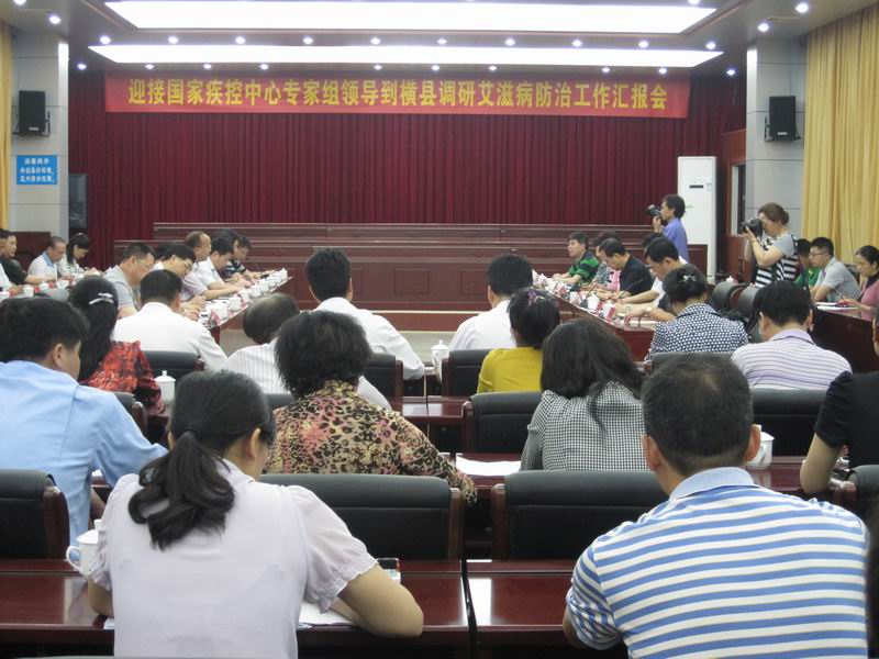 王宇主任一行聽取橫縣人民政府唐小若縣長匯報艾防工作