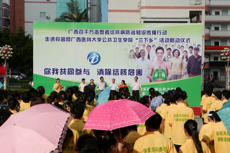 啟動儀式上,廣西衛生項目辦公室徐廣保主任做了重要講話,他強調啟動本次活動目的是為了更大程度地發動社會各界力量,鼓勵公眾積極參與結核病防治知識的傳播,從而提高公眾結核病防治核心信息知曉水平,積極營造全社會共同參與結核病防治工作的良好氛圍。并且希望志愿者認真學習掌握結核病防治知識,用愛心、真心、責任心投入到結核病防治知識傳播工作中去,為我區結核病防治工作作出貢獻。