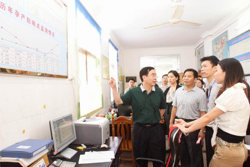 隨后,李國堅廳長赴新圩鎮衛生院查看了防艾宣傳教育、基本公共衛生服務項目實施、農村居民電子檔案建檔等工作情況,親切慰問衛生院醫務人員。李廳長指出,艾滋病防治工作要真正做到重心下移,充分利用鄉鎮衛生院等基層醫療衛生機構的力量,提高對艾滋病病毒感染者和病人的隨訪質量,但同時也要做好感染者和病人的隱私保護工作。