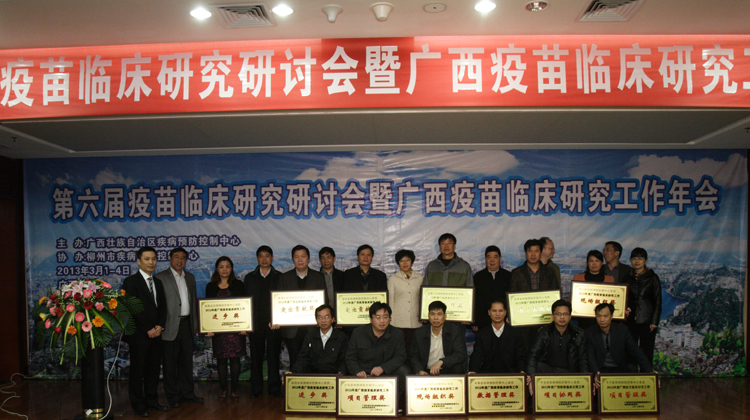 2013年3月1~4日,自治區疾病預防控制中心疫苗臨床研究所在柳州市召開“第六屆疫苗臨床研究研討會暨廣西疫苗臨床研究工作年會”。會議邀請到國家食品藥品監督管理局、國家食品藥品檢定研究院、國家食品藥品審評中心、中國疾病預防控制中心、復旦大學、第四軍醫大學、江蘇省、北京市、廣東省、河南省、河北省、河南省、甘肅省等7個兄弟省市疾病預防控制中心、廣西食品藥品監督管理局、柳州市、南寧市、桂林市、賀州市、梧州市等5個市級及26個縣(市、區)的疾病預防控制中心的專家和學者,與會代表共計200余人。