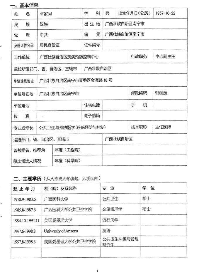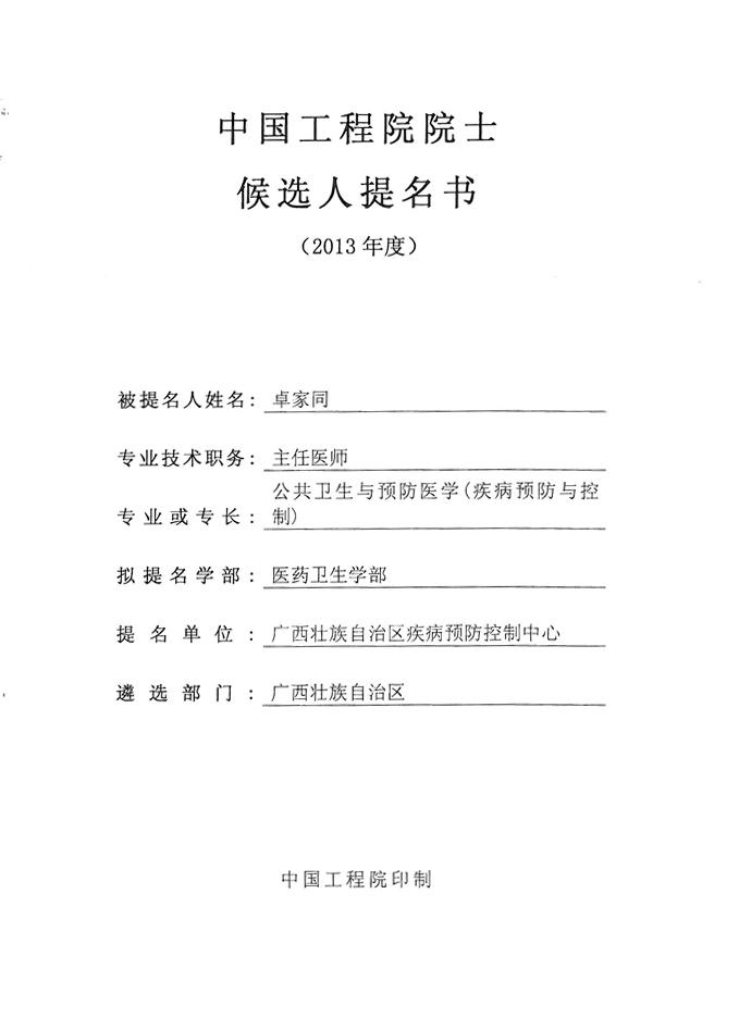 根據廣西科學技術廳的通知要求,現將我中心中國工程院院士候選人卓家同同志的相關信息進行公示。公示時間30天。在公示期間,如對公示信息有異議的,請以書面形式反應到人事部門。
