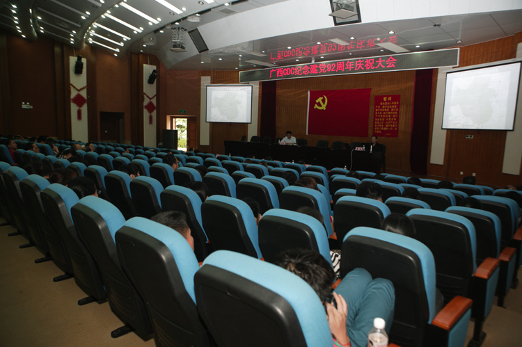 7月1日,廣西自治區疾病預防控制中心召開黨員大會,隆重慶祝中國共產黨成立92周年,大會對榮獲2011—2012年度區直機關工委優秀共產黨員名、2011—2012年度自治區衛生廳和自治區疾病預防控制中心的先進基層黨組織、優秀共產黨員和優秀黨務工作者進行表彰。中心黨政班子成員和全體黨員及入黨積極分子近300人參加此次活動。