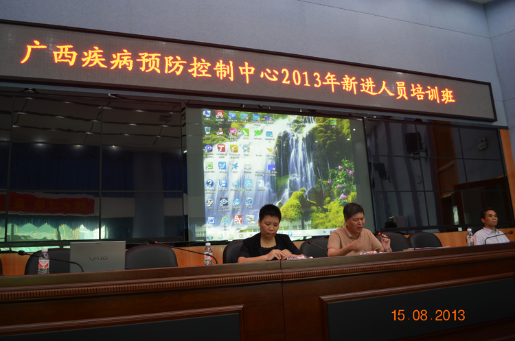 為了讓新進人員盡快轉變角色適應中心工作需要, 2013年8月15~16日,自治區疾病預防控制中心開展新進人員崗前培訓。出席培訓班開幕式的中心領導有唐振柱主任、方鐘燎副主任、周艷副主任。開幕式由周艷副主任主持,唐振柱主任致詞。