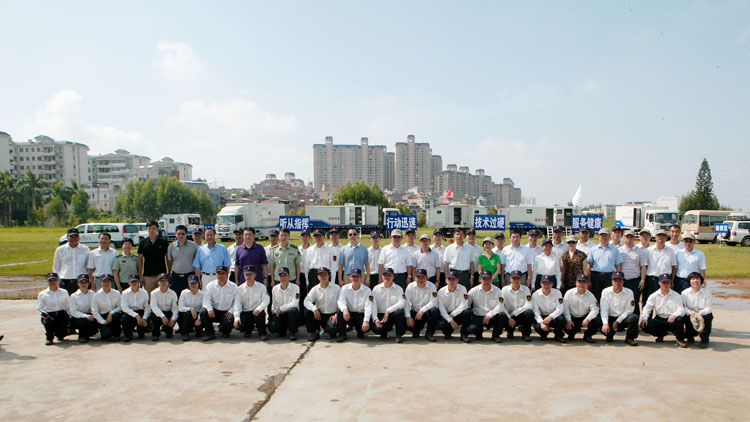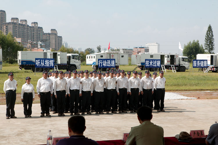 演練分為模擬突發事件實戰演習和應急車輛及裝備展示兩個部分。演習模擬應急隊伍在執行第十屆中國-東盟博覽會和中國-東盟商務與投資峰會衛生防病保障任務中接到某接待賓館發生腹瀉疫情報告,隊員們接到疫情報告后迅速展開行動前往疫點處理疫情,熟練的展示了現場調查采樣與檢測、現場消殺、隊員外傷自救處理及食宿、水電保障等應急技能。經過1個小時的匯報演練,隊員們的快速反應能力,專業規范的操作技能,以及默契熟練的配合得到了專家們的一致好評。通過對現場通信指揮、現場調查處置、現場應急檢測和生活保障等11輛專業車輛的同期解說及模擬演習,向國家驗收組全面展示廣西應急隊伍對突發急性傳染病事件的應急處置能力。