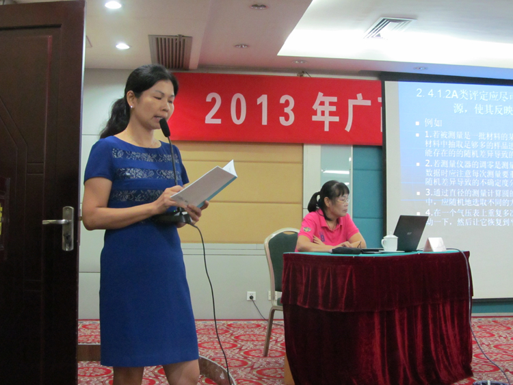 本次培訓邀請自治區級計量認證、食品檢驗機構資質認定評審資深專家、廣西柳州市產品質量監督檢驗所質量負責人曾燕萍老師進行授課。曾老師分別對測量不確定度的定義、測量不確定度評定的方法和流程、不確定度的A類B類評定及合成、檢測結果的表示、測量不確定度的作用等內容進行了詳細的講解,并對CNAS-GL06《化學分析中不確定度的評估指南》進行了解讀,同時結合食品檢驗的常用方法進行了實例分析。授課從實用出發,深入淺出,使這門原本晦澀難懂的課程變得易于理解。培訓結束后對參加培訓的學員進行了筆試考核。