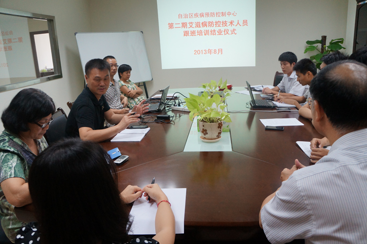 為提高全區艾滋病防控人員技術能力,提升全區防制工作質量,我中心于2012年10月啟動了跟班培訓工作,采用自愿報名和分期培訓方式,對全區各市縣艾滋病防控技術人員進行培訓。第二期培訓于2013年7月1日-8月31日舉辦,4名學員分別來自南寧市衛生局、荔浦縣、浦北縣和象州縣疾控中心。