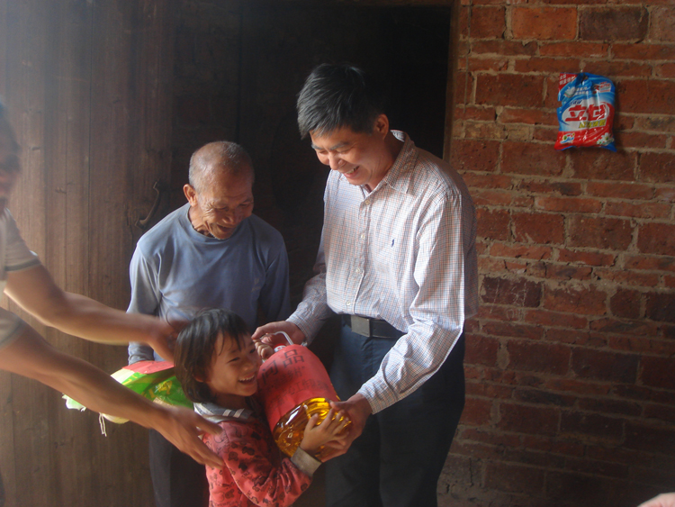 28日下午,在中心主任唐振柱帶領下,調研組到新坪鎮安民村、馬嶺鎮同善村慰問困難家庭,并為這些家庭送去了調研組同志自發捐款購買的大米及食用油。在這些生活困難家庭走訪中,唐主任首先來到新坪鎮安民村蓮塘屯80歲的特困戶朱以坤老人家中,他親切地詢問了老人家目前的生活和身體狀況,得知他兒媳因病去世,兒子外出打工,家中與年幼的孫女相依為命。近年來飲水原可就近到河邊取用,但由于河水污染,只能每天到較遠的地方取用井水。當了解到當地政府為解決這部分群眾飲水問題,擬多方努力尋找清潔水源引自來水入戶,唐主任關切地說:“清潔水源事關我們每個群眾的生活,老人家那么大年紀還要每天為了生活用水奔波,要注意身體,借著這次對口聯系的機會,我們一定要發揮好我們的技術優勢,全力協助當地做好清潔飲水工作,想方設法盡力為群眾解決實際困難。”隨后,調研組一行又走訪了多戶困難家庭。