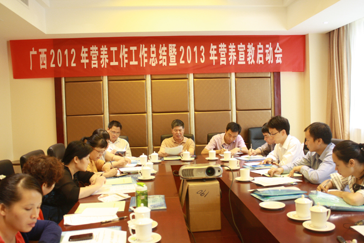 隨后營養與學校衛生所同志對廣西2012年開展的“中國居民營養監測”工作以及“農村地區營養食品追蹤調查項目”工作進行了總結。另外,對2013年廣西居民營養宣教工作方案進行了解讀,此次宣教的內容有:膳食營養、食品安全、健康生活方式、慢性疾病控制以及預包裝食品營養標簽等。宣教方式主要以健康講堂/講座、廣場宣傳、發放宣傳折頁以及展板宣傳為主要手段,鼓勵地方大膽創新,實施具有地方特色的宣傳方式。