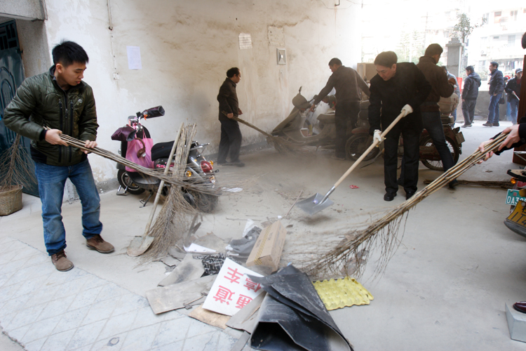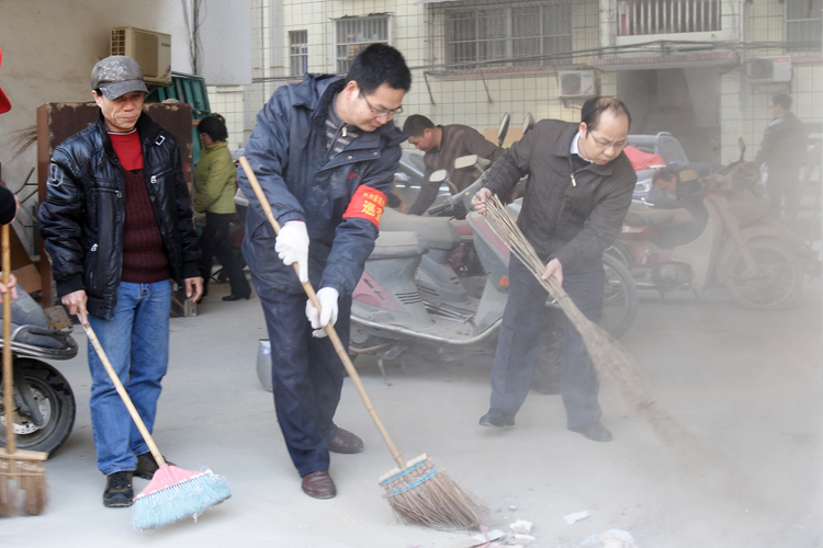 2014年1月15日上午,中心組織了30多名黨員、團員及干部職工對院內人行道和樓棟之間的衛生死角進行清理。在衛生大清掃活動大院內的各棟樓間、通道里,都可以看到大家忙碌的身影,有的用長竹竿挑揀綠化帶中的垃圾,有的用掃帚對街道和樓棟之間的衛生死角進行清理,有的投放老鼠藥杜絕鼠患,熱火朝天的勞動場面也感動了不少住戶,紛紛加入到清潔衛生大清掃的活動當中。經過大家近兩個小時的努力,共清掃路面600多平方米,清理衛生死角8處,運走垃圾雜物2車,使得大院衛生環境得到了更好的提升。