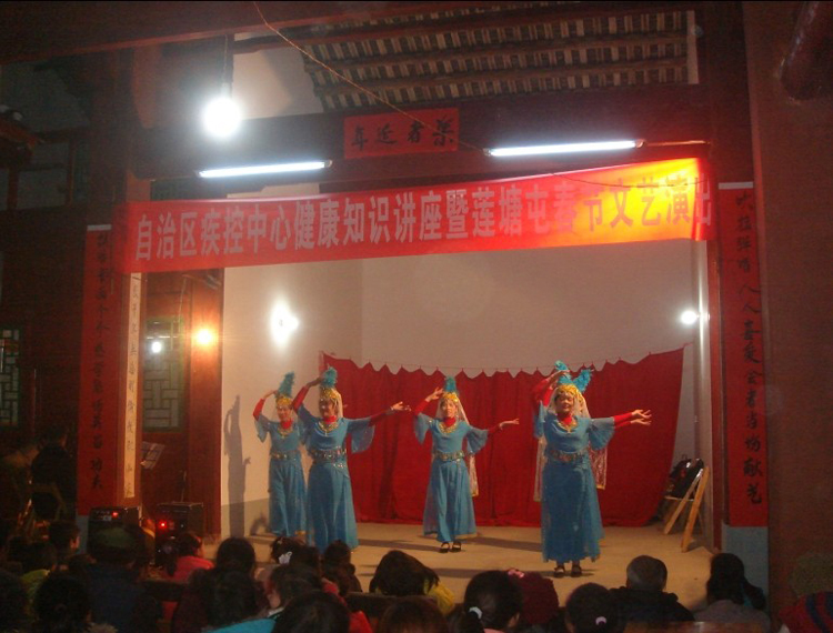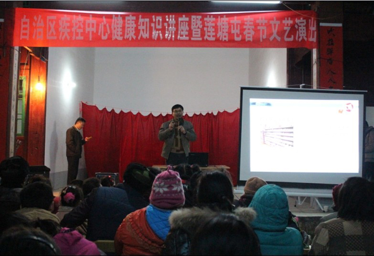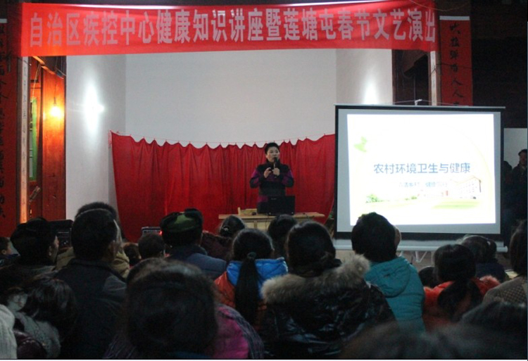 馬年新年農歷初十(2014年2月11日),荔浦縣農村還充滿濃濃的年味,廣西區疾控中心專程到“美麗廣西·健康同行”行動聯系點荔浦縣新坪鎮安民村蓮塘屯“健康之家”開展居民健康素養巡講和新春文藝演出活動,給沉浸在過年氣氛中的群眾送去了一份新年健康禮物。