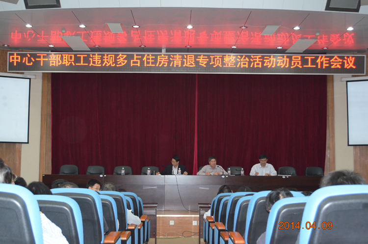 2014年4月9日下午,中心召開干部職工違規多占住房清退專項整治活動動員會,全體干部職工和離退休老干代表參加了會議。會議由黨委書記楊進業主持。