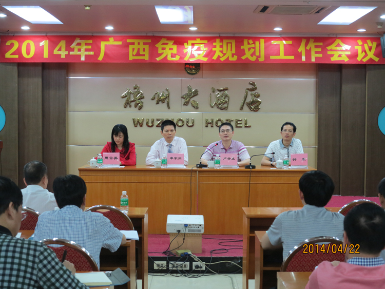 2014年4月21-23日,自治區疾病預防控制中心在梧州市召開了2014年全區免疫規劃工作會議,會議全面總結2013年工作情況,并對2014年免疫規劃工作進行了部署。自治區衛計委疾控處盧貴基副處長、自治區CDC卓家同副主任、梧州市衛生局周云英副局長和市CDC黃貴彪主任出席了本次會議,自治區CDC免疫規劃所全體人員以及各市、縣(市、區)CDC分管主任、免疫規劃科科長共計260多人參加本次會議。