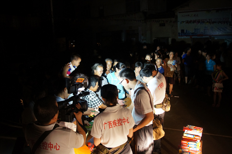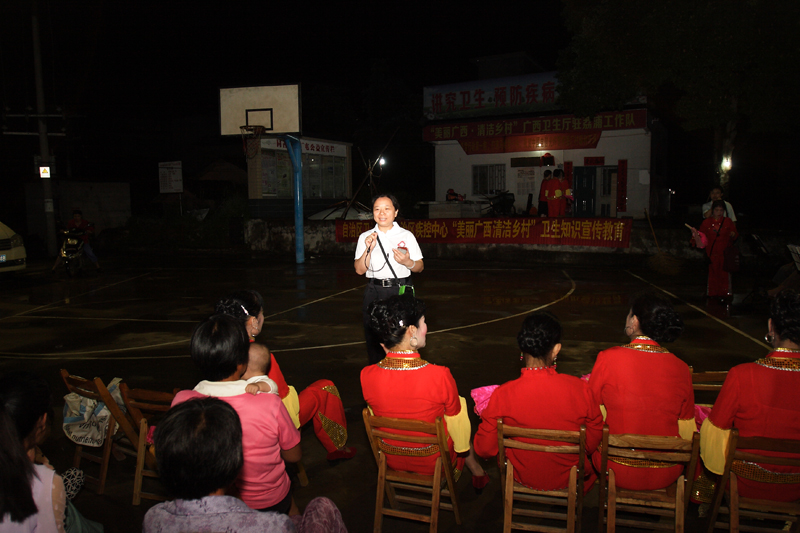 2014年6月18日晚,國家突發急性傳染病防控隊廣西隊伍利用在荔浦縣開展拉動訓練的機會,結合“美麗廣西、清潔鄉村”活動的需要,林玫副主任、應急與信息管理科付志智科長、李永紅副科長、消殺與媒介防制科唐小蘭科長、急性傳染病所曾竣副所長、免疫規劃所杜進發副所長、結核病防制所梁大斌副所長等20名隊員分別赴自治區衛生計生委和自治區疾病預防控制中心對口支援的馬嶺鎮福德村和同善村組織開展了衛生知識宣傳教育,共約400多名村民到現場參加活動。