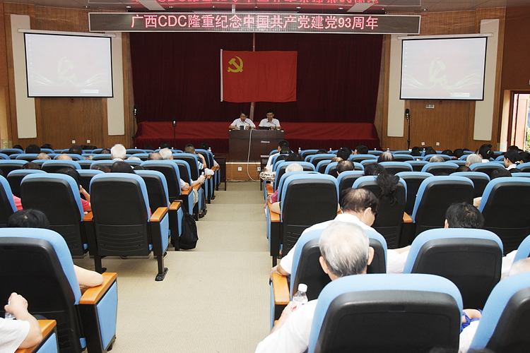 7月1日下午,自治區疾控中心組織全體黨員在中心大禮堂開展以“迎‘七一’上黨課,紅歌飛揚獻給黨”為主題慶祝中國共產黨建黨93周年的系列活動。中心全體黨員、入黨積極分子以及部分職工近260人參加了此次活動。中心黨委楊進業書記主持了此次活動。