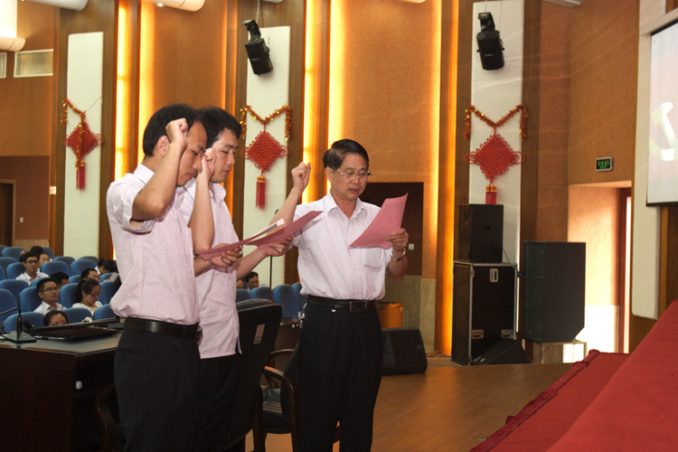 接著,中心黨委副書記李永振作題為《堅定理想信念 堅守組織紀律》的專題黨課。他以寬廣的視野、詳實的資料,緊密結合身邊優秀黨員事跡,從當前黨員領導干部違紀違法案件,分析了腐敗產生的原因,系統和深刻地闡述了黨員干部要堅定理想信念,堅守組織紀律的重要性。并結合中心唐志榮醫師的感人事跡,鼓勵大家要努力向楷模學習,要堅定中國特色社會主義理想信念不動搖,堅守共產黨人的精神追求不松懈,嚴格遵守組織紀律和工作紀律,爭做合格的共產黨員,人民的健康衛士。隨后,2名新黨員在楊進業書記的帶領先,面對莊嚴的黨旗進行了宣誓。