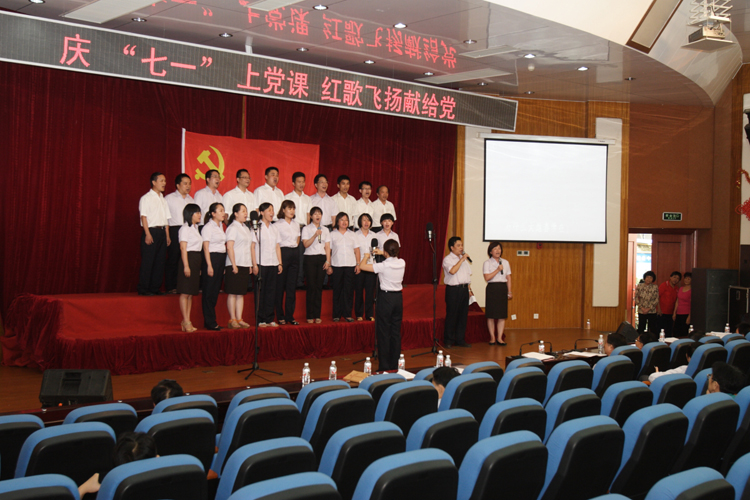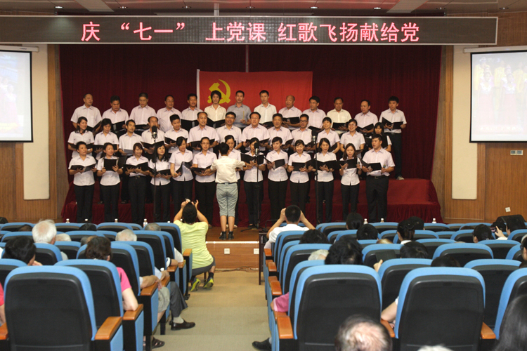 緊接著在充滿激昂的音樂聲下,開始了紅歌獻給黨的合唱演出。來自九個支部的新老黨員們,以飽滿的精神放聲歌唱,熱情高歌共產黨好、社會主義好、改革開放好、偉大祖國好的主旋律,展示中心黨員團結和諧、奮發向上的精神風貌,弘揚了社會主義核心價值觀,激發愛國熱情,表達喜慶建黨93周年的豪邁心情。