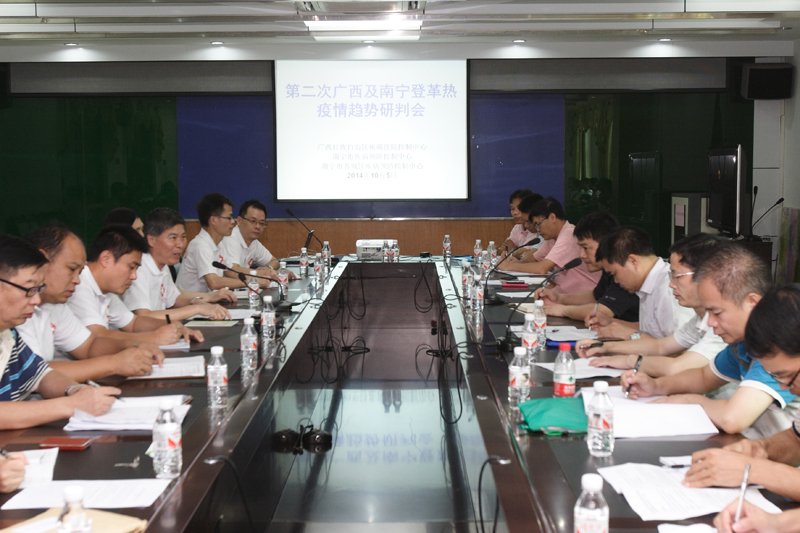 金秋時節,正當人們迎來國慶7天長假和第四十五屆世界體操錦標賽在南寧舉行之際,登革熱病在南寧興寧區、西鄉塘區、青秀區等城區局部多點暴發,病例不斷增加。由于登革熱正值流行季節,伊蚊密度大,人口流動性大,且廣東的疫情非常嚴重,因此,如果不及時采取有效措施控制,登革熱疫情將會像廣州那樣造成大范圍擴散,失去控制,給南寧市居民身心健康和社會穩定、世界體操錦標賽的順利舉辦帶來巨大危害和極大威脅。為確保市民群眾度過歡樂、平安的節日,保證世界體操錦標賽的圓滿完成,根據自治區衛計委的指示和要求,中心反應迅速,高度重視,在中心主任、主任醫師唐振柱的領導和帶領下,組織精兵強將,和南寧市各有關部門通力協作,迅速提出各種防控策略和措施,科學、有序、規范地推動和實施各項防控工作,力保疫情不擴散,將損失和影響降低到最少程度。中心參戰隊伍中有來自急性傳染病防制所、消殺媒介科、健康教育與傳媒科、應急信息管理科、綜合辦公室從事流行病學、病毒學、蟲媒控制、健康教育等學科的專家和技術骨干,他們當中不少是訓練有素的國家級傳染病防控應急隊隊員,參戰隊伍共計有60多人。他們在節日期間,每天堅守工作崗位,盡職盡責,及時對疫情進行科學研判,挺著烈日酷暑,汗流浹背,冒著被蚊子叮咬傳染登革熱的威脅,到醫院、病人家庭進行個案調查,到疫源地指導滅蚊工作,監測滅蚊效果,制作宣傳材料,開展健康教育工作;到疫區采集病人、蚊子樣本,在實驗室檢測病人和蚊子是否帶有病毒,為疫情的診斷、趨勢的判斷和控制效果的評估提供檢測依據。經過近半個月的工作,疫情已經得到了較好的控制,從10月3日起,新發病人出現逐漸減少的趨勢,疫情不再急劇的上升,南寧市市民免受了生病的威脅,輕松、愉快、平安地度過了的國慶黃金周佳節。2014年10月5日自治區疾控中心主任、主任醫師唐振柱再次組織自治區、南寧市和南寧市各城區疾控中心相關領導、專家進行了充分討論和分析,對當前及今后一段時期南寧市疫情發展趨勢進行研判。專家組認為,南寧市防控登革熱疫情成效初步顯現,在南寧市各城區出現大范圍疫情暴發流行或者出現多城區持續多發、高發的可能性不大,通過持續采取有效的防控措施,預計在10月下旬全市新發病例將出現明顯下降,疫情將得到有效控制。