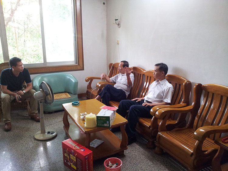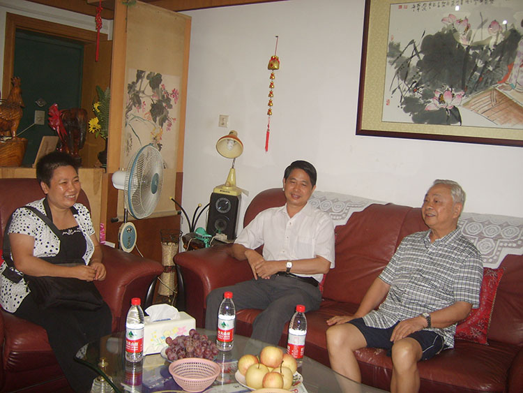 陪同自治區衛生計生委副主任麥家志(左二)慰問單位原黨委書記、離休干部李克難同志