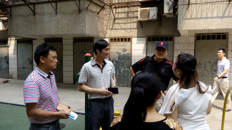 在康邁公司宿舍疫點,譚毅所長詳細詢問了宿舍區的蚊媒消殺情況,包括所請的消殺公司是否有資質,使用的消殺器械,消殺方法,以及居民對滅蚊效果的反映等。同時詢問了宿舍區居民登革熱防控知識的了解情況。