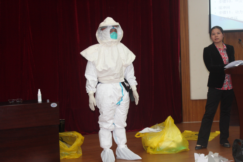 唐振柱主任分析了我區埃博拉防控工作態勢,他指出,目前西非埃博拉出血熱疫情仍未得到有效控制,我區部分市縣有不少人員在西非疫區務工,隨著春節臨近,我區將迎來疫區歸國人員返鄉高峰,面臨著埃博拉出血熱的傳入風險,各市縣要高度重視防控工作。中心急性傳染病防制所譚毅所長、李海副所長、陳敏玫副所長,寄生蟲防制所黎軍副所長、消殺與媒介防制所唐小蘭所長等專家分別做了專題講座,內容包括埃博拉出血熱疫情概況及防控形勢;埃博拉出血熱疫情報告、健康監測管理及流行病學調查處置;埃博拉出血熱標本采集、保存和運輸;廣西非洲輸入性瘧疾與埃博拉出血熱聯防聯控埃博拉出血熱消毒隔離技術等。培訓班安排了埃博拉出血熱防護現場演示,并指導學員們動手練習個人防護用品使用。