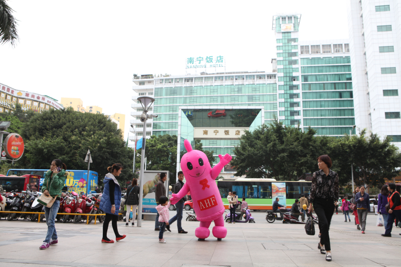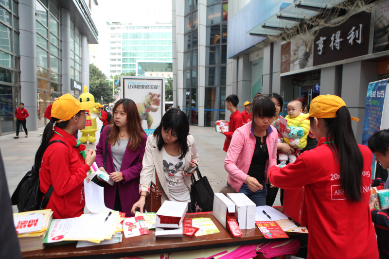 2014年12月1日是第27個世界艾滋病日。當天下午,廣西壯族自治區疾病預防控制中心與美國艾滋病健康基金會(AHF)共同在南寧市核心商業區悅薈廣場開展艾滋病防治主題宣傳活動,活動內容包括艾滋病防治知識的宣傳、現場快速檢測等一系列活動。