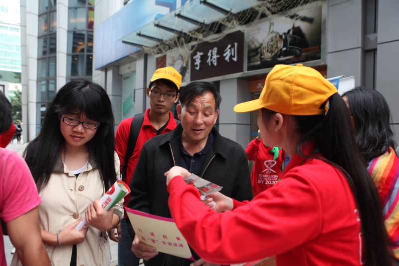 通過街頭宣傳活動,旨在提高公眾對我國艾滋病流行及防治的認識,減少社會歧視。尤其是通過宣傳早檢測,早治療,讓更多的感染HIV的人盡早知道自己感染狀況,并得到及時的治療,避免將病毒傳播給其他人,希望全社會共同努力向這個目標邁進!