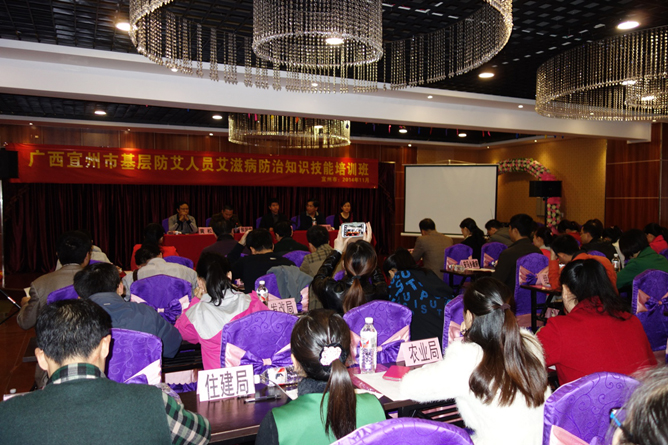 宜州市為國家和廣西確定的第三輪全國艾滋病綜合防治示范區,為提高基層防艾人員艾滋病防控技術水平,由自治區疾控中心主辦、宜州市衛生局與疾控中心協辦的“宜州市基層防艾人員艾滋病防治知識技能培訓班”于2014年11月24-26日在宜州市舉辦。宜州市艾滋病防治工作委員會各成員單位防艾聯絡員、各鄉鎮政府分管領導,轄區內各醫療機構、鄉鎮衛生院分管領導與防艾專干共137人參加了此次培訓班。