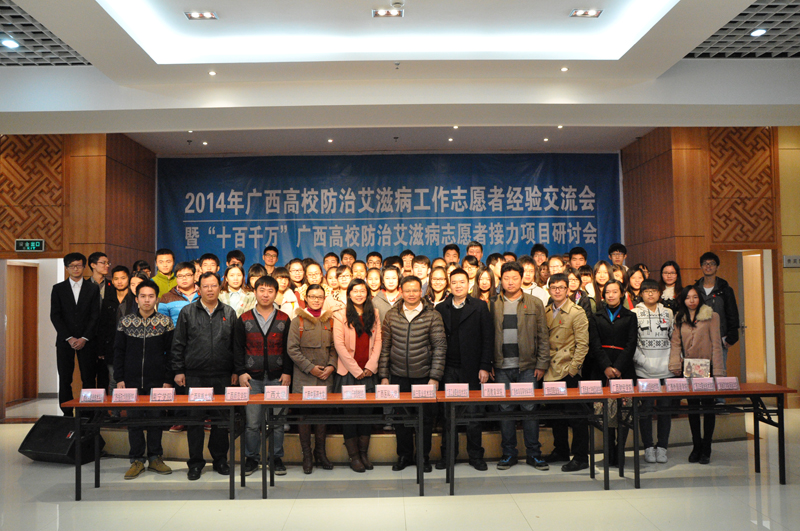 廣西高校防治艾滋病工作志愿者經驗交流會暨“十百千萬”廣西高校防治艾滋病志愿者接力項目研討會日前在南寧舉行。此次交流會由南寧市高校同伴教育聯盟、共青團廣西中醫藥大學委員會、共青團廣西衛生職業技術學院委員會聯合主辦,攜手駐邕22所高校近百名青年防艾志愿者代表共同開展,旨在給駐邕各高校防艾宣傳志愿者提供交流的平臺,匯報現階段高校社團防艾工作的進展,同時也是“十百千萬”廣西高校防治艾滋病志愿者接力項目的研討會。