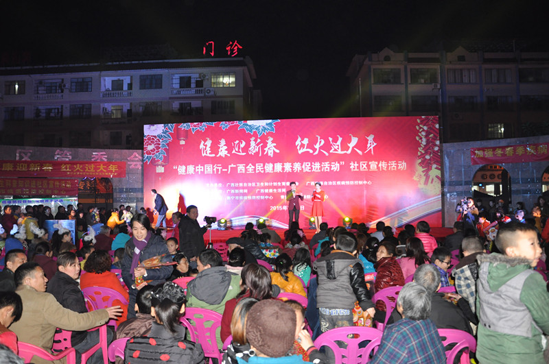 新春佳節到來之際,2月6日晚,由廣西衛計委、廣西疾控中心主辦,廣西新聞網、廣西健康生活網承辦,南寧市疾控中心、青秀區疾控中心協辦的“健康中國行—廣西全民健康素養促進行動”社區宣傳活動在仙葫社區廣場拉開了帷幕。