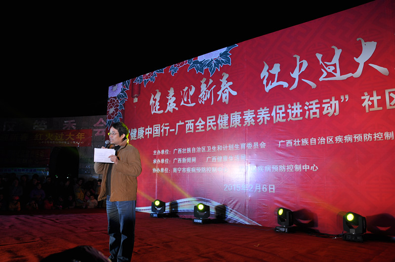 廣西疾控中心健教科科長梁紹伶還上臺給觀眾們演講了春節期間防病看病的做法,他通俗易懂向觀眾介紹如上醫院看病的一些常識,春節期間不要暴飲暴食、大吃大喝,要過一個祥和、健康的新春佳節。