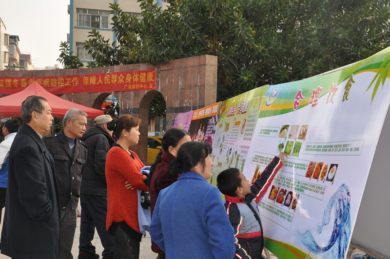 廣西疾控中心健康教育、食品安全防治、傳染病防治、慢性病防治和免疫規劃等有關領導、專家,南寧市疾控中心、青秀區衛計局、青秀區疾控中心有關領導和工作人員到現場指導,給仙葫社區1000多名居民開展疾病預防和保健知識的宣傳和咨詢。他們當場發放了兩萬多份有關疾病預防和保健知識宣傳材料,在會場兩旁,擺開了琳瑯滿目的宣傳欄,通過投影幕布播放健康生活方式等宣傳片,吸引了人們前來觀看。記者問了一個黃姓大約四十歲的男性居民說,“你看了宣傳板后,有何感想”,他說:“板報介紹了很多傳播疾病預防和保健知識,這很實在,我很喜歡看。比如介紹-冬春季節哪些傳染病容易爆發,說得一清二楚,回去后,我要告訴家人做好預防,并知道有病早發現、早去治療。”在測血壓處,記者看到居民們排成長龍,一一接受醫生測血壓;有不少居民到咨詢臺一邊索取有關預防和保健宣傳材料,一邊說“這樣的宣傳材料好,我們要回去好好和家人看”。
