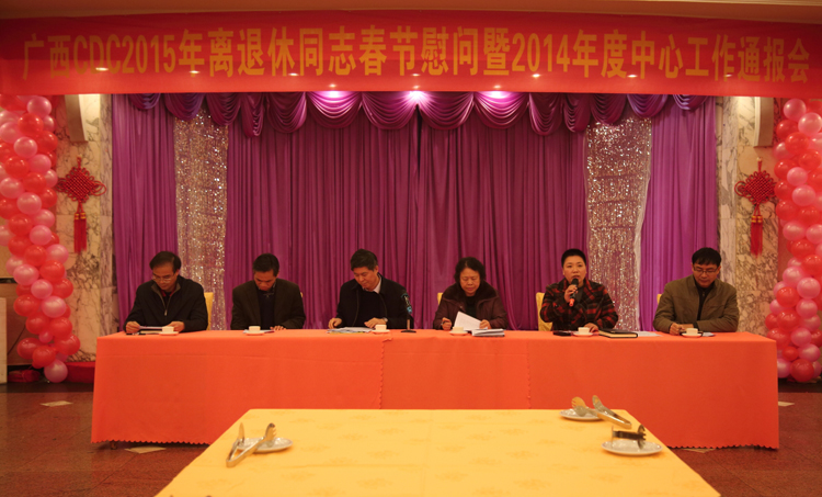 二月初春的邕城,煙雨蒙蒙,春寒料峭,乍暖還寒,隨著2015乙未羊年春節的臨近,到處洋溢著歡樂祥和的喜慶氛圍。在此新春佳節之際,廣西CDC于2月11日在桃源飯店園中廳順利召開了2015年離退休同志春節慰問暨2014年度中心工作通報會。