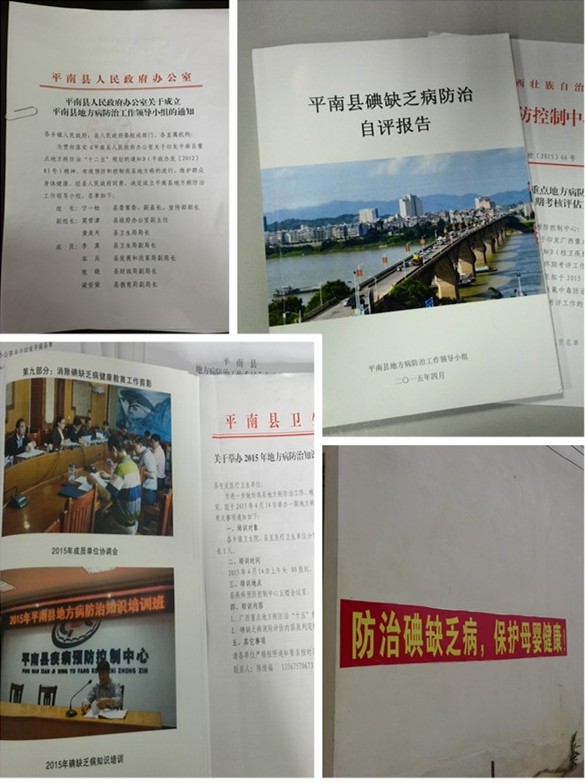 考評反饋會上,考評組認為平南縣在迎接“規劃”終期考評的過程中,高度重視,積極開展工作,具有以下幾個特點:一是縣政府對地方病防治工作重視,專門成立了“平南縣地方病防治工作領導小組”來加強重點地方病的防治工作。二是縣政府牽頭相關部門召開了部門協調會,并安排3萬元經費用于支持考評工作;三是縣衛生局、鹽務局、CDC領導對考評工作重視,不但親自參加現場采樣工作,還積極抽調十余人名業務人員參加現場工作,保障了現場調查工作順利、高效完成。四是防治工作人員對考評工作重視,積極收集“十二.五”規劃期間相關防治工作材料,匯編成自評報告書:《平南縣碘缺乏病防治自評報告》,結構清晰,內容詳實,能夠較好的反映平南縣的地方病防治工作進展情況。劉軍副所長建議:衛生與鹽務部門保持密切協作,有效防范非碘鹽沖擊市場,保障平南縣重點地方病防治工作持續取得進展。