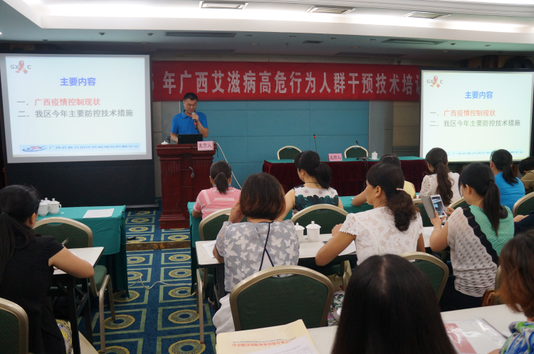 為提高全區高危人群干預工作隊員(高干隊員)業務技能和知識水平,總結和交流、推廣低檔暗娼艾滋病防治集成干預模式。5月6-8日自治區疾控中心在南寧市舉辦了“2015年廣西艾滋病高危行為人群干預技能培訓班”,全區各市、縣(市、區)疾控中心和部份社會組織高干隊員共計110人參加此次培訓。