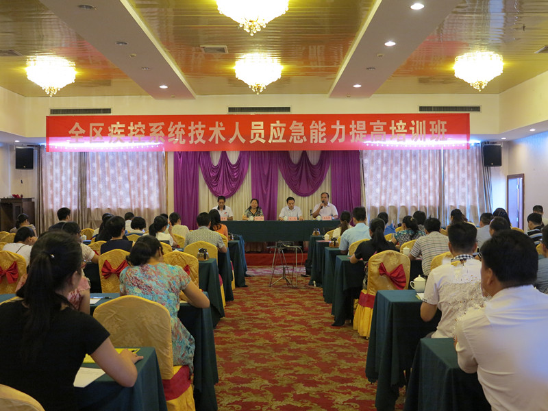 在開班儀式上,玉林市疾控中心李文主任致歡迎辭,并介紹了近年來玉林市傳染病疫情及突發公共衛生事件監測、報告與處置情況。林玫副主任結合近年我區突發公共衛生事件特點及今年登革熱疫情防控、洪澇災害衛生防病等應急工作所面臨的嚴峻形勢,要求全區各級疾控部門提高警惕、加強培訓、做好衛生應急物資和技術準備、加快應急隊伍建設、不斷提升應急處置能力。