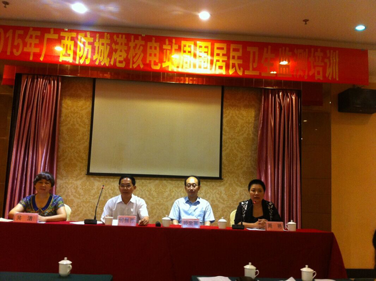 為提高我區核電站周圍居民衛生監測工作專項工作人員業務水平,依據國家衛計委頒布的《核電站周圍居民健康與衛生監測工作指南》和《核電站周圍居民健康調查規范》要求,自治區衛生計生委于6月16~18日在防城港市舉辦了2015年廣西防城港核電站周圍居民衛生監測培訓班,來自防城港市和欽州市衛生計生委、疾控中心、醫療機構以及兩市所轄相關縣鄉醫療機構、自治區疾控中心的相關業務人員近150人參加了培訓,培訓班由自治區疾控中心副主任周艷主持。