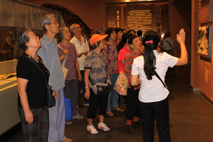 在講解員的帶領下我們進入博物館,詳細地了解昆侖關戰役的起因、經過和結果。昆侖關戰役于1939年12月18日凌晨打響,中國軍隊以空軍、炮兵、步兵等多兵種協同配合,在各方面支持下,與裝備精良的日軍進行了殊死搏斗。戰火燃遍昆侖關周邊。歷時十四天的戰役當中,中國軍隊前赴后繼,浴血奮戰,昆侖關得而復失,失而復得,經過反復激烈的爭奪,日軍大部分被殲滅,昆侖關戰役以中國軍隊的勝利宣告結束。參觀過程中,老同志們緊跟在講解員周圍,表情嚴肅認真,一邊參觀一邊感慨的說:“我們這一代人是親身經歷抗日戰爭的,更加了解戰爭的殘酷,希望我們祖國不斷強盛,永遠不再遭受戰爭之苦!”。博物館內運用多媒體現代技術,展現出當年抗擊外國侵略者沖鋒陷陣、驚心動魄的場面。