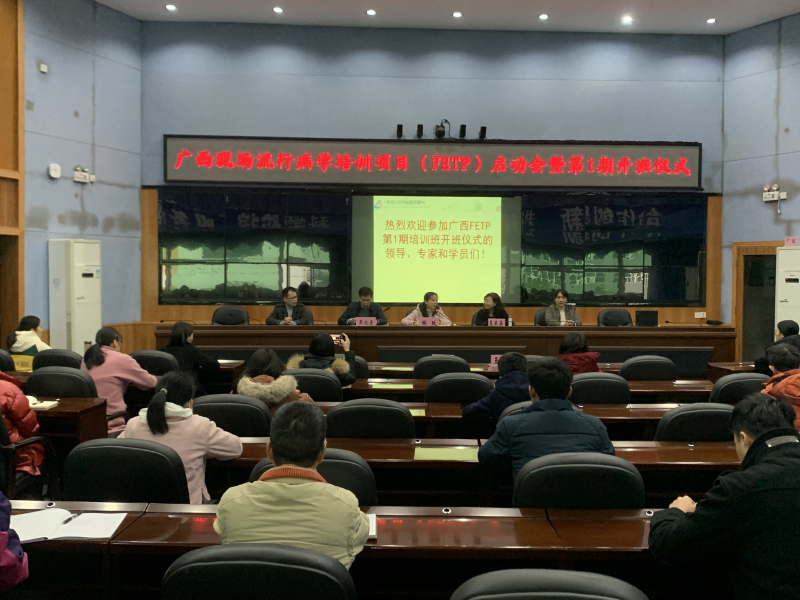 2020年12月15日,廣西現場流行病學培訓項目(FETP)啟動會暨第1期開班儀式在自治區疾控中心舉行,自治區疾控中心主任林玫、副主任黃兆勇,項目辦公室各成員(相關科所負責人),第1期學員及帶教導師共60多人參加了會議。