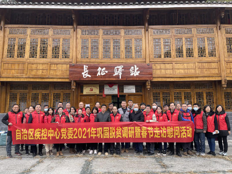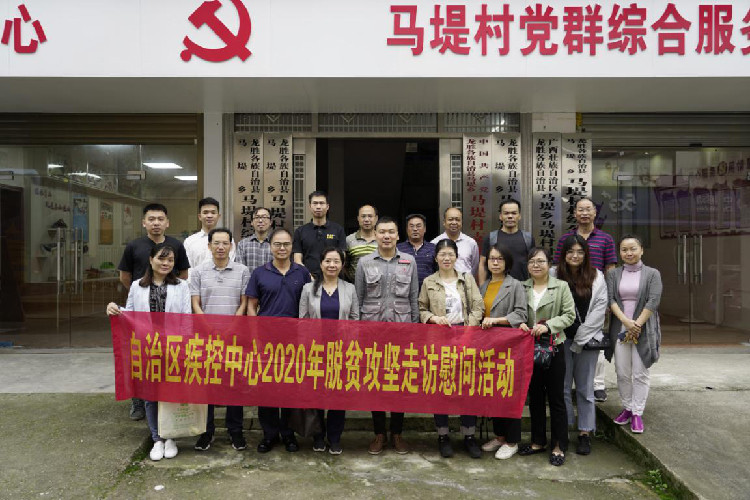 自治區疾控中心黨委自黨中央提出實現脫貧攻堅目標的總體要求以來,貫徹落實相關要求,高度重視脫貧攻堅工作。中心黨委書記呂煒、中心主任、黨委副書記林玫等班子領導多次帶領幫扶干部深入龍勝縣馬堤村開展調研、慰問、健康義診及健康素養知識宣傳等活動;2015年,中心林可亮同志受選派作為第一批駐村第一書記,開展駐點扶貧工作,為中心幫扶戶順利脫貧打下堅實的基礎。
